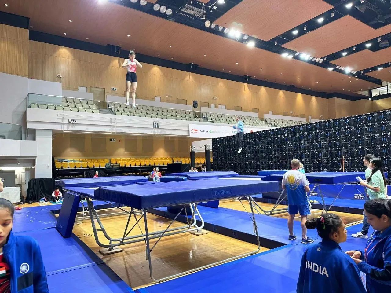 为服务好本届蹦床锦标赛,米兰集团保障人员严格按照赛事服务手册开展工作,从场馆的规划布局、器材的安装调试、标准高度的校准、过程巡检等各个环节,一丝不苟、严谨细致,确保蹦床器材安装的准确无误,始终践行国际赛场上的中国标准,见证米兰集团全领域规划、设计、制造、集成、运营、服务一站式解决方案的发展理念。