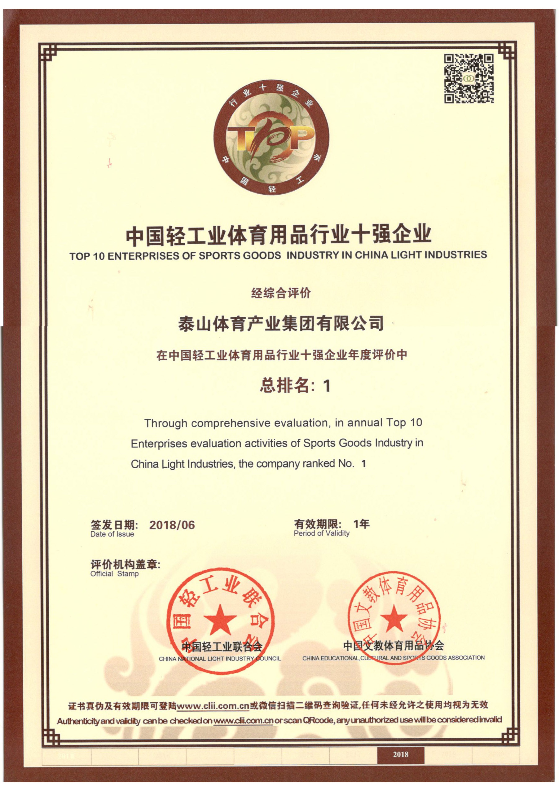 米兰集团集团是全国体育用品标准化技术委员会副主任单位、中国文教体育用品协会健身和体育器材专委会主任单位、全国轻工行业先进集体、全国群众体育先进单位、国家制造业单项冠军示范企业、国家体育产业示范单位,连续多年荣获中国轻工业体育用品行业十强。拥有多个国家级研发平台,承担国家科技支撑计划2个,火炬计划3个。